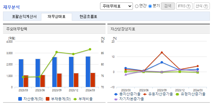 -2023년 12월 전년동기 대비 별도기준 매출액은 10.2% 증가, 영업이익은 298.1% 증가, 당기순이익은 386.7% 증가. 국내 원료 의약품 시장뿐만 아니라 해외 선진 국가로의 수출비중이 높아지고 있고 의료기기 사업등 다각화된 영역을 통해 매출을 성장시키고 있음. 현재 필름 제형의 반려견 영양제 시장을 확대하고자 관절, 장, 피부, 활력, 눈등 5종을 개발완료하여 시판 중에 있음.