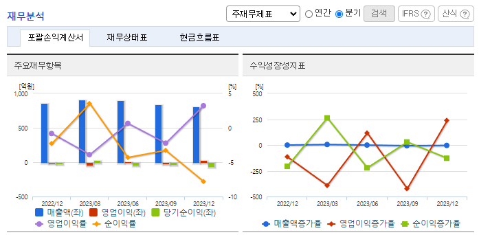 -2023년 12월 전년동기 대비 연결기준 매출액은 14.2% 감소, 영업이익 적자전환, 당기순이익 적자전환. 동사의 염료부문 반응성염료의 제품 및 상품, 그리고 화학부문의 사카린의 매출이 전년동기 대비 감소하였고 판관비 등 각종 비용 절감노력에도 영업이익 적자전환. 저가의 인도, 중국제품이나, 고품질의 선진 염료들과의 경쟁력에서도 점차 우위를 차지하는 노력을 지속 중.
