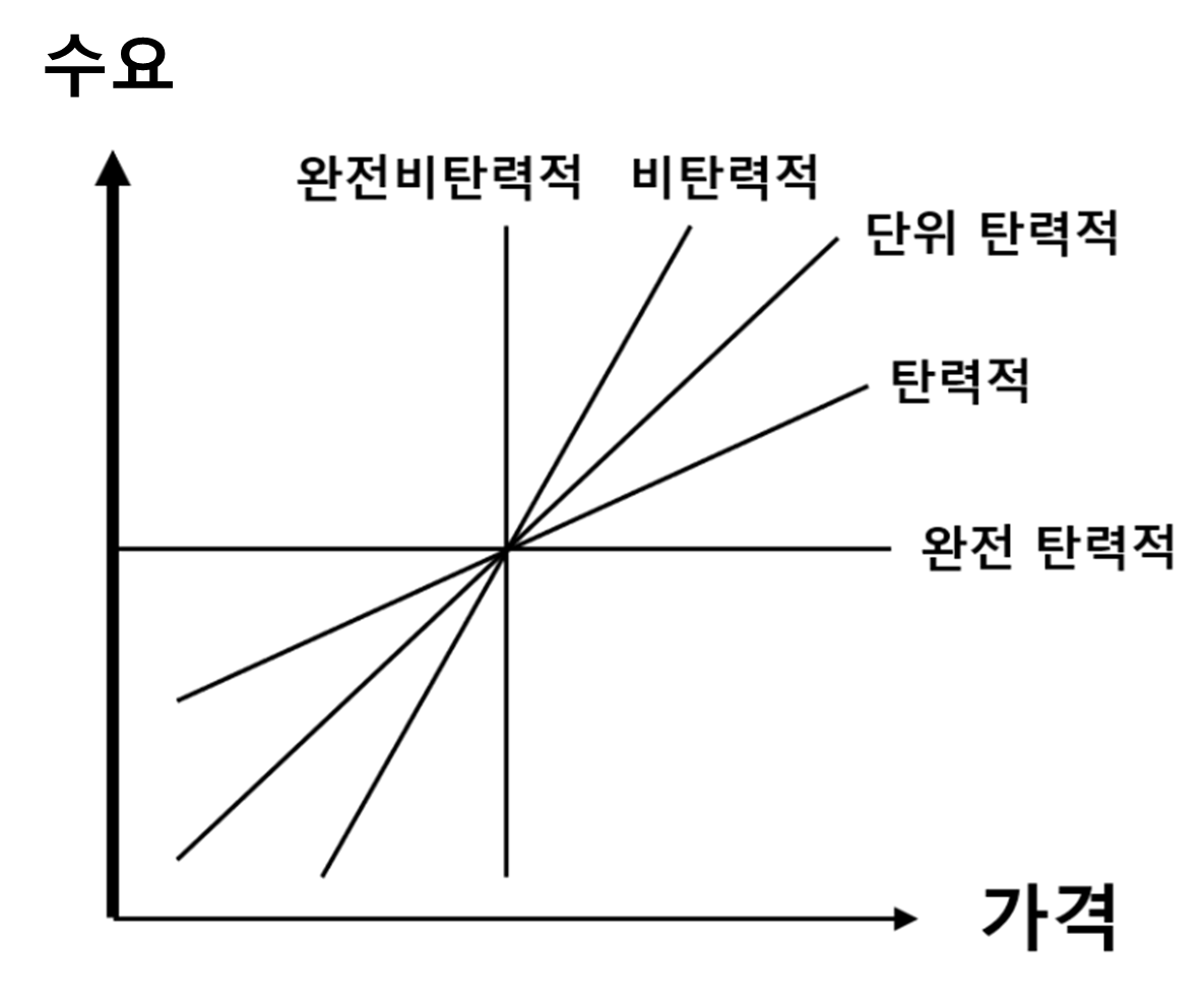 이전 포스팅에서 공급탄력성에 대해 다루었었다. 당시 그렸던 그래프에서 공급 부분을 수요로 바꾸면 동일한 그래프가 된다.
