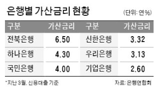 은행마다 가산금리의 차이가 꽤 있다. 하지만 은행에서는 돈을 대출하고자 하는 사람의 신용도에 따라서 가산금리도 우대 받을 수 있다. 해당 은행 계좌로 급여가 입금이 된다던지, 아니면 해당 은행과 연계된 카드사의 카드 실적이 있다던지, 해당 조건도 은행마다 다르니 대출을 하려는 경우에는 본인이 받을 수 있는 우대조건까지 모두 고려하여 은행에서 상담을 받자.