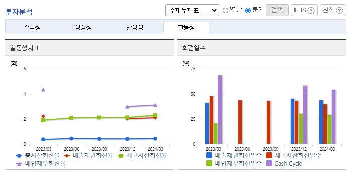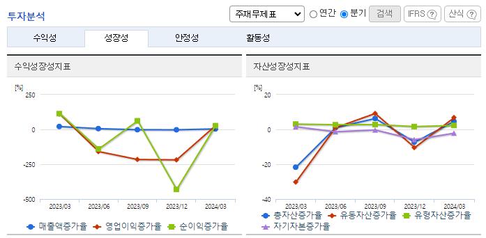 -2024년 3월 전년동기 대비 연결기준 매출액은 5.6% 증가, 영업이익 적자전환, 당기순이익 적자전환. 외형은 전년동기 수준을 상회하였으나, 원가율 상승 및 각종 비용 등의 증가로 인하여 수익성 크게 악화되며 적자 전환된 상태. Power Seat Motor, Powertrain용 Motor 등을 전략 기종으로 선정하여, 수주 활동 및 기술개발을 통해 사업 영역을 확대해 나가고 있음.