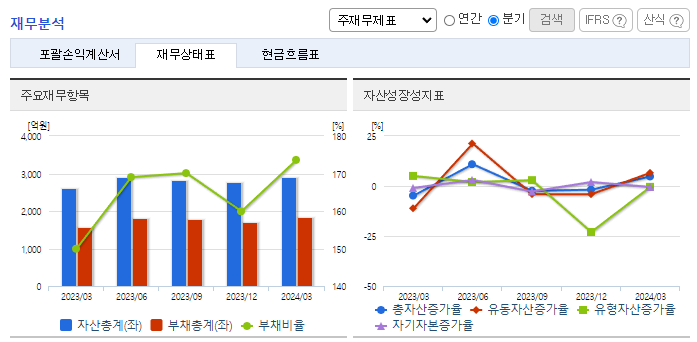 -2023년 12월 전년동기 대비 연결기준 매출액은 14.6% 증가, 영업이익은 64.6% 증가, 당기순이익은 392.9% 증가. 경제가 성장할수록 육류소비의 증대가 예상되지만 반대로 경기하강의 시점에는 가계소비의 위축으로 인한 매출의 축소가 예상됨. 축산농가와 인간적인 유대관계 및 양질의 사양기술 지도를 통한 영업기반 구축으로 영남지역의 가축용 배합사료 전문회사로 높은 신뢰도를 형성하고 있음.