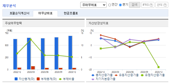 -2023년 12월 전년동기 대비 별도기준 매출액은 9.7% 감소, 영업이익은 17% 감소, 당기순이익은 11.2% 감소. 2023년 4월 신규 브랜드인 '드미트리'를 론칭하여였으며 '동국헬스케어홀딩스'와 제휴를 통해 '콤부차'와 '기능성 구미'를 출시함. 플러스 사이즈 여성의 체형을 매력적으로 보정해 주기 위해 다양한 그레이딩(grading)의 의류 제품을 지속적으로 개발 중임.