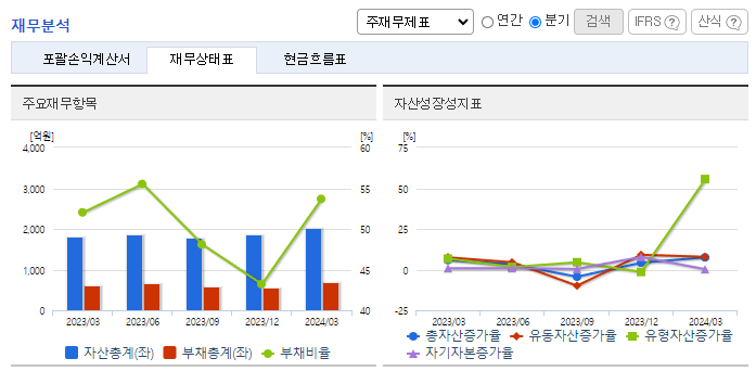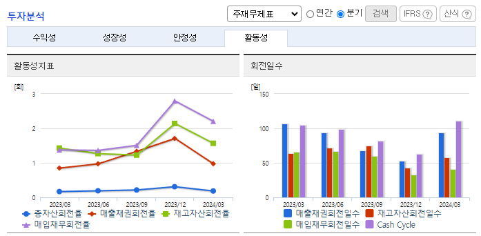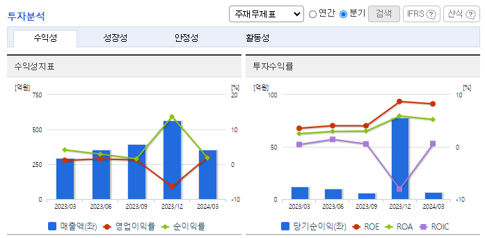 -2023년 12월 전년동기 대비 연결기준 매출액은 16.6% 증가, 영업이익 적자전환, 당기순이익은 89.4% 증가. 매출이 크게 늘었는데도 수익성이 악화된 건 매출원가가 크게 늘어났기 때문임. 또 판매비와 관리비 역시 전년 대비 90% 이상 늘면서 수익성에 부정적 영향을 미쳤고, 결국 영업손실로 적자 전환함. 수배전반 사업부문에서 동사는 해외 시장 개척에도 노력하고 있음.