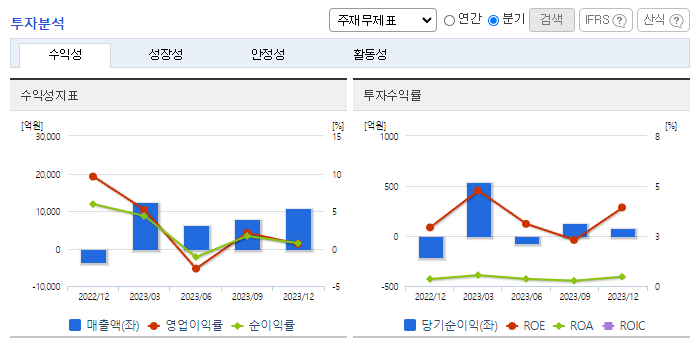 -금리 안정화에 따라 보유자산 평가손익과 운용실적이 회복되면서 2023년 당기순이익은 전년 대비 크게 증가함. 차액결제거래 수수료 중개 이익 감소로 인한 장외파생상품 부문과 부동산 PF 시장의 부진으로 인한 IB 부문은 적자로 전환되었음. 관계사에 대한 지분법이익은 증가함. 최대주주인 교보생명을 대상으로 2,500억 원 규모의 3자 배정 유상증자를 실시함. IB사업을 확대하고 자산운용 경쟁력과 디지털 금융 기반 신사업을 강화할 계획임.