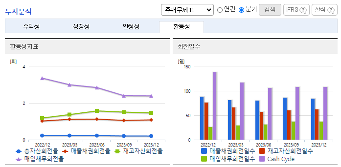 -2023년 12월 전년동기 대비 연결기준 매출액은 18.1% 감소, 영업이익은 80.2% 감소, 당기순이익은 89.6% 감소. 주력제품인 에폭시수지 제품의 판매 부진과 더불어 원가율 상승으로 인해 영업수익성 큰 폭으로 하락한 상황. 중국시장 내에서 저가의 로컬 업체와 달리 고부가가치 제품 및 특수용도의 Polyol, 특수 산업분야 공략 등을 통해 비교적 안정적인 매출 유지해 왔으나 금년은 다소 어려운 환경.