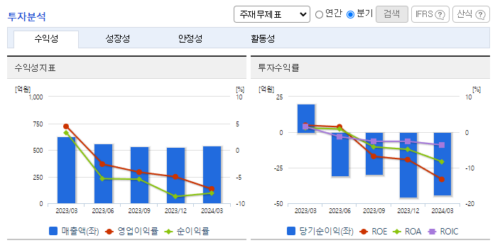 -2023년 12월 전년동기 대비 연결기준 매출액은 32% 감소, 영업이익 적자전환, 당기순이익 적자전환. 다양한 노력에도 불구하고 매출이 30% 넘게 감소하면서, 각종 비용 절약에도 불구하고, 영업이익은 대폭 감소하면서 적자로 전환함. 동사낸 매출 확대를 위해 대형 거래선과의 돈독한 유대 관계를 유지하는 한편 신규 바이어 개척을 위한 노력으로 충분한 물량확보에 주력하고 있음.