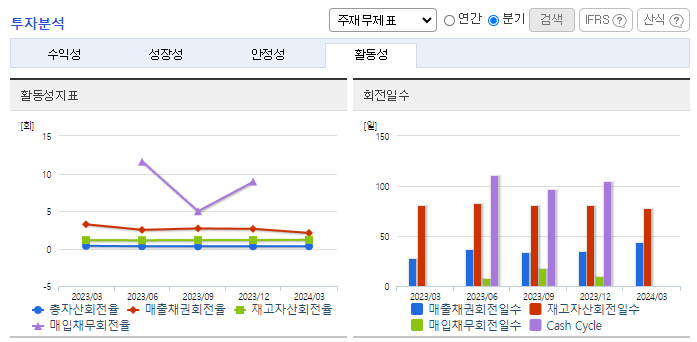 -2023년 12월 전년동기 대비 연결기준 매출액은 32% 감소, 영업이익 적자전환, 당기순이익 적자전환. 다양한 노력에도 불구하고 매출이 30% 넘게 감소하면서, 각종 비용 절약에도 불구하고, 영업이익은 대폭 감소하면서 적자로 전환함. 동사낸 매출 확대를 위해 대형 거래선과의 돈독한 유대 관계를 유지하는 한편 신규 바이어 개척을 위한 노력으로 충분한 물량확보에 주력하고 있음.