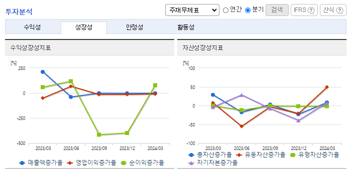 -2024년 3월 전년동기 대비 연결기준 매출액은 8.3% 감소, 영업손실은 47.8% 감소, 당기순손실은 36.7% 감소. 전분기에 보그인터내셔날, 당분기에 보그인터내셔날의 지분 전량을 처분함에 따라 전년동기대비 매출 감소 및 수익성 감소. 물류사업을 더욱 강화를 위한 4차 산업의 기술을 접목한 스마트 물류전환, 스마트 물류 시스템 전환을 위한 IT 시스템 및 플랫폼을 개발해 나가고 있음.