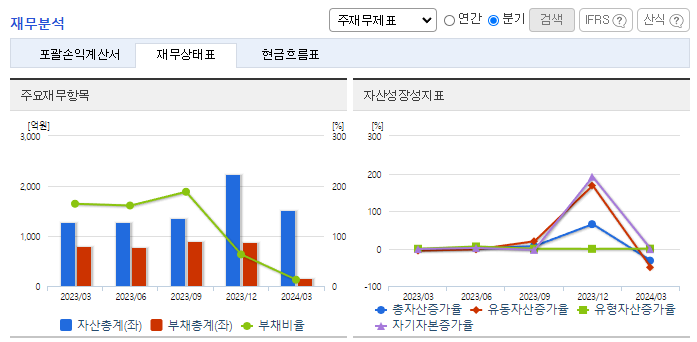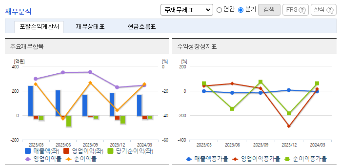 -2024년 3월 전년동기 대비 연결기준 매출액은 29.4% 감소, 영업손실은 6.8% 증가, 당기순손실은 29.6% 감소. 정상적인 영업활동이 이루어지지 못한 탓에 매출이 감소하고 적자가 지속되고 있음. 2024년 2월 회생절차가 종결되고 SM그룹에 유상증자 형식으로 인수될 예정임. SM그룹 편입 등 대외적인 환경 개선으로 더욱 내실 있고, 지속 가능한 기업으로 나아갈 중장기 비전과 전략을 수립하고자 함.