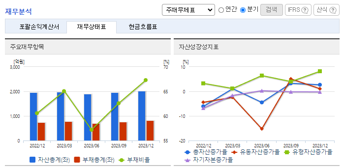 -2023년 12월 전년동기 대비 별도기준 매출액은 13.1% 감소, 영업이익은 71.2% 감소, 당기순이익은 16.7% 증가. 글로벌 경기 둔화에 따른 수요 감소의 여파로 판매량과 가격이 하락하였음. 동사는 2008년 및 2012년에 롯데케미칼과 Polycarbonate 용 중간원료인 DMC를 각각 15년간 장기 공급하기로 계약을 체결하였고, 동사에서 제조하는 DMC를 인도하고 있음.