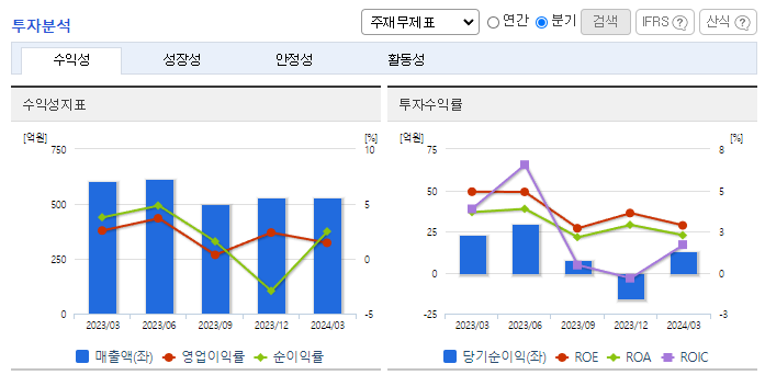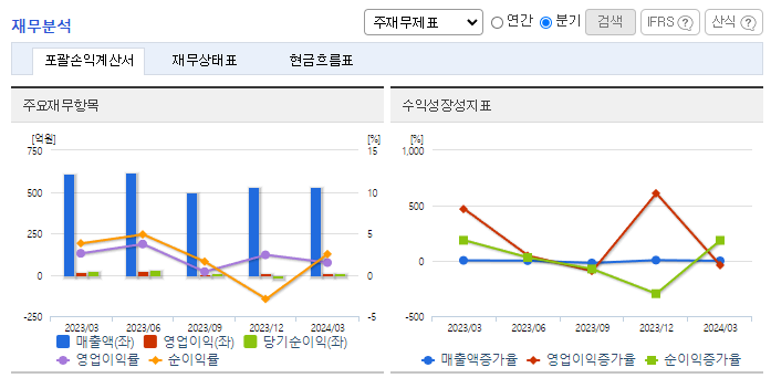 -2024년 3월 전년동기 대비 연결기준 매출액은 12.3% 감소, 영업이익은 50.5% 감소, 당기순이익은 41.4% 감소. 국내 철강시장은 건설, 기계, 가전 등 전방산업 부진에 따라 미진한 수요회복세를 보인 가운데, 중국, 일본 등 저가 수입산 유입이 급증하면서 어려운 여건이 지속되었음. 동사는 꾸준한 원가절감과 고객관리를 통해 안정적인 성장을 위해 노력 중.