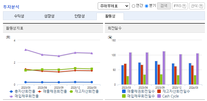 -2024년 3월 전년동기 대비 연결기준 매출액은 4.6% 증가, 영업이익은 167% 증가, 당기순이익은 457.2% 증가. 신차용 타이어 공급 확대 및 고수익 타이어를 비롯한 교체용 타이어 시장의 성장을 보이며 외형 확대됨. 고수익 제품 중심의 구성 개선 및 글로벌 가격 안정화 등으로 영업이익은 전년동기 대비 두 배이상의 성장세를 보임. 동사는 전기차 전용 브랜드인 이노뷔를 앞세워 프리미엄 시장 공략할 예정임.