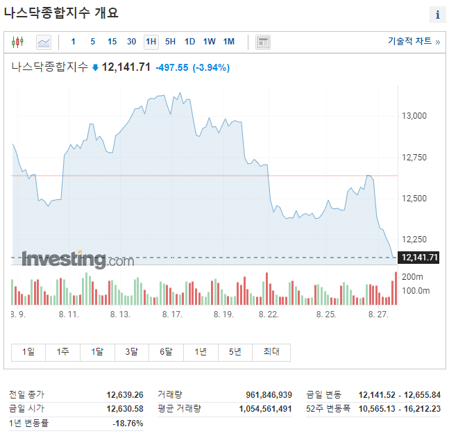 인플레이션과의 싸움에서 물러서지 않을 것 이라는 메시지를 남겼다. 사실 이러한 방향은 연초 인플레이션이 발생하여 금리를 몇차례 올릴 때 부터 예상되었던 태도라고 할 수 있는데, 시장의 반응을 보면 이제 인플레이션을 잡았다? 혹은 금리를 올릴만큼 올렸다고 생각했는지 이번 발언에 대해 나스닥이 급락하는 결과를 보여 주었다.
