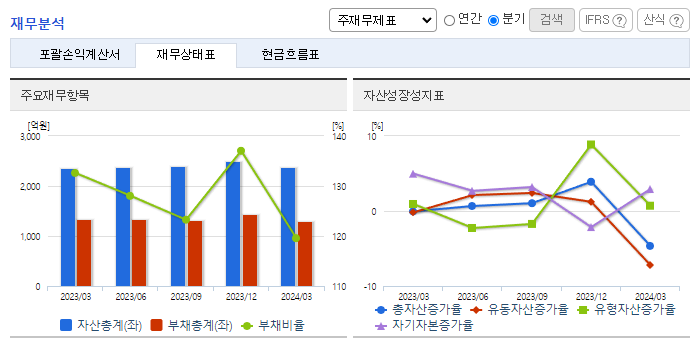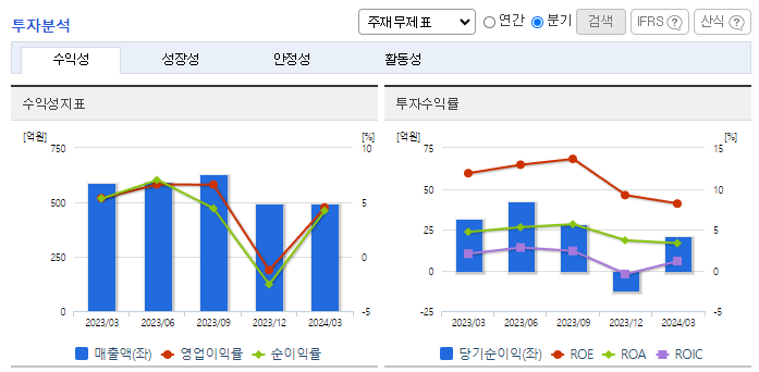 -2024년 3월 전년동기 대비 연결기준 매출액은 16% 감소, 영업이익은 29.6% 감소, 당기순이익은 21.5% 감소. 금형의 경우 입찰에 의해 가격이 결정되나 금형의 제작과정에서 제품도면의 변경에 따라 금형수정이 빈번히 발생하여 초기결정된 가격이 변경되는 경우가 많음. 금형매출액의 약 61%는 수출에 해당되는데 수주시점의 환율과 판매시점의 환율 변동에 의해 원화가격이 변경되는 경우가 발생함.