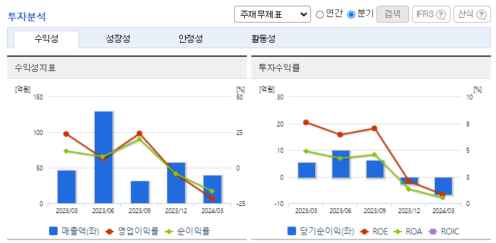 -2024년 1분기 연결기준 영업이익은 전년동기 대비 적자전환, 당기순이익 적자전환. 투자조합에 대한 관리보수는 소폭 증가하였으나, 공정가치금융자산 평가 및 처분손익의 감소와 이자비용의 증가로 영업이익과 당기순이익이 적자로 전환됨. 지난 4월 주식매수선택권 행사에 따른 자기 주식 교부를 위해 보토주 64만 4,000주가 주당 560원(3.6억 원 규모)에 처분됨. 전년말에 335억 원 규모의 신기술사업투자조합을 결성함.