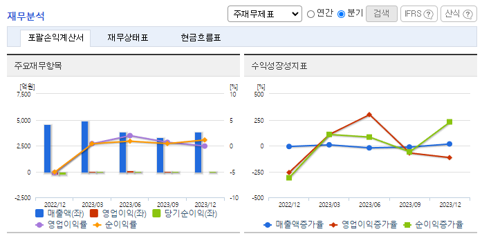 -2023년 9월 전년동기 대비 연결기준 매출액은 29.8% 감소, 영업이익은 86.8% 감소, 당기순이익은 90% 감소. 2023년도는 원자재 가격 및 국제비료가격 하락으로 인하여 주요 제품의 판매가격이 전년 대비 하락하여 매출이 감소하였음. 동사의 주요 매출처는 농협경제지주로서 2023년 1월 농협경제지주와 체결한 비료 납품 계약 규모는 4,246억 원으로, 3분기 기간 동안 2,520억 원을 납품하였음.