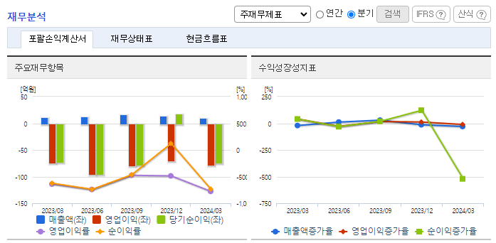 -2023년 12월 전년동기 대비 연결기준 매출액은 36.8% 증가, 영업손실은 3.5% 감소, 당기순손실은 34.4% 감소. 신약후보 파이프라인 CJRB-101는 미국 FDA와 한국 식약처에서 임상 1/2상 IND 승인을 받았고, 23년 10월에 첫 환자 투약을 진행함. 2023년 3월 인수한 항염증 파이프라인(CJRB-203)과 단독 및 조합 균주로 우선순위 도출 및 임상 데이터 추가 확보를 위한 연구진행 중임.