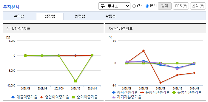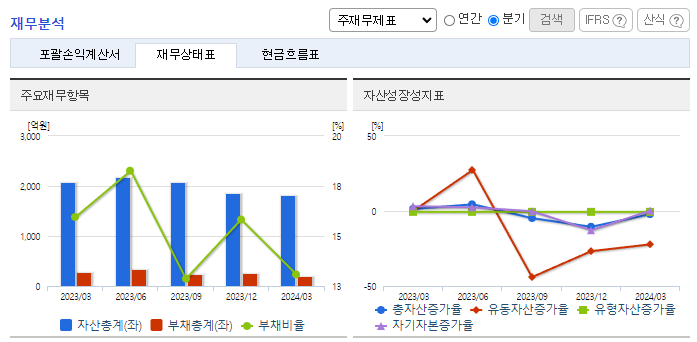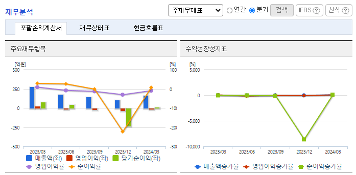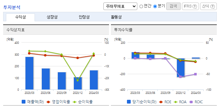 -2024년 3월 전년동기 대비 연결기준 매출액은 41% 감소, 영업이익 적자전환, 당기순이익은 86.5% 감소. 분양시장 위축과 부동산 PF대출 부실에 대한 정부의 정책 대응 등의 이유로 수주가 감소함에 따라 매출이 감소함. 증여 사유로 2024년 5월 최대주주가 변경됨. 재무적 안정성이 타사 대비 높은 편이며 진행 중인 수주 계약의 대부분이 비교적 안정적인 관급공사 위주의 사업임.