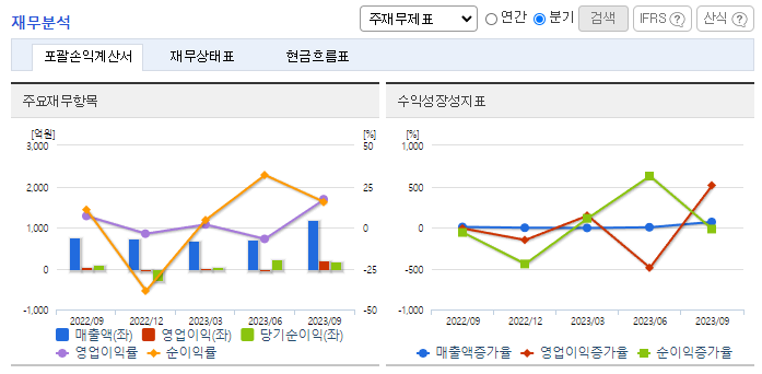 -2023년 9월 전년동기 대비 연결기준 매출액은 15.5% 증가, 영업이익은 25.6% 감소, 당기순이익은 12.3% 증가. 2023년 당기 중에는 MMO RPG 게임 전문 개발사 파우게임즈의 지분을 취득하여 신규 IP 및 신작 라인업을 확충함. 대형 업체들을 중심으로 PC/콘솔 플랫폼에서의 신규 IP 제작 소식이 이어지고 있으며, 신규 IP를 활용한 멀티플랫폼 게임 등이 차후 시장의 성장을 견인할 것으로 예측됨.