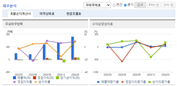 -2024년 3월 전년동기 대비 연결기준 매출액은 256.6% 증가, 영업이익 흑자전환, 당기순이익 흑자전환. 동사는 '보글봇'을 앞세워 신성장 동력으로 점찍은 푸드테크 분야에서 국내외 시장 공략을 시작함. 세계 최초로 개발한 플립칩-볼그리드어레이(FC-BGA) 반도체 패키지용 ‘양면 세정 쏘&소터’를 중국 시장에 수출을 시작하였고, 하반기에도 수출성과를 이어갈 것으로 기대됨.