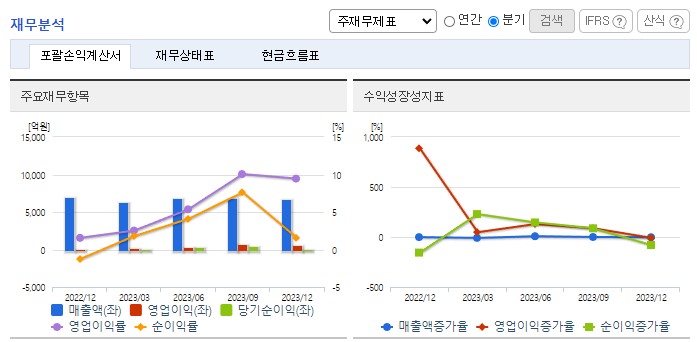 -2023년 9월 전년동기 대비 연결기준 매출액은 6.8% 증가, 영업이익 흑자전환, 당기순이익 흑자전환. 원재료 가격 및 해상운임의 경쟁력 확보로 팬데믹 이전의 수익성을 확보함에 따라 영업이익 흑자전환함. 해외 지법인 확대를 통한 글로벌 영업망 구축을 활발히 진행하고 있으며 창녕공장 및 유럽공장을 통하여 국내 업체는 물론 포르셰/폭스바겐/아우디 등 세계 완성차 업체로의 타이어 공급을 지속적으로 확대하고 있음.