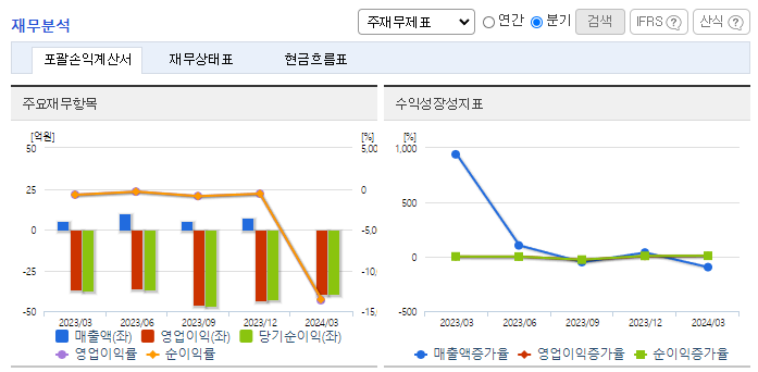 -2024년 3월 전년동기 대비 연결기준 매출액은 94.2% 감소, 영업손실은 8.5% 증가, 당기순손실은 6% 증가. 지난 2년간 당사는 대형 진단검사실과 글로벌 연구기관 등 레퍼런스급 고객 확보에 집중하면서 제품에 대한 신뢰성을 높임. 2024년 상반기 기준, EU CE 인증을 기반으로 아프리카 내 나이지리아, 앙골라, 코트디부아르 등 주요 국가에 대한 제품 등록을 완료하며 시장 진입에 성공함.
