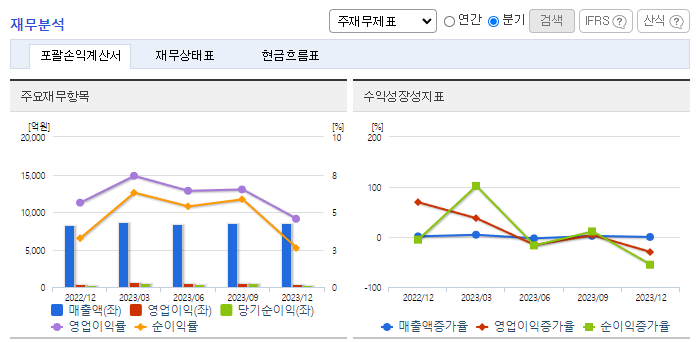 -2023년 9월 전년동기 대비 연결기준 매출액은 10.8% 증가, 영업이익은 162.8% 증가, 당기순이익은 67.7% 증가. 주력산업인 면/스낵/음료 매출이 증가하였으며 해외에서는 캐나다/호주/베트남법인 매출이 확대됨에 따라 전체 매출 증가하였음. 국내 수요의 한계를 극복하기 위해 해외사업을 적극 추진하고 있음. 이에 세계 최대의 면류시장인 중국과 세계 경제의 중심인 미국에 현지공장을 운영하며 글로벌 경영을 가속화하고 있음.