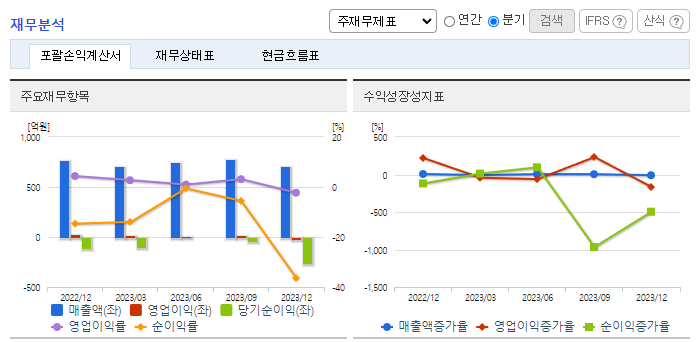 -2023년 9월 전년동기 대비 연결기준 매출액은 2.9% 증가, 영업이익 흑자전환, 당기순손실은 39.9% 감소. 매출은 소폭 증가에 그쳤으나 비용 절감을 통해 영업이익은 전년 동기 대비 흑자 전환 하였고 당기순손실은 감소세임. 중국 최고의 모바일 메신저인 'WeChat'의 국내 바코드 결제 업체로 위챗페이 사용자가 국내에서 현금 없이 결제할 수 있게 QR코드, 바코드 등 오프라인 통합 결제 플랫폼을 제공함.