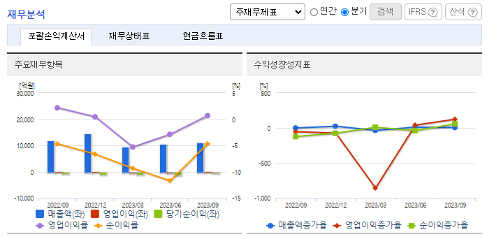 -2023년 9월 전년동기 대비 연결기준 매출액은 4.3% 증가, 영업이익은 47.5% 증가, 당기순이익은 47.4% 증가. Citrix VDI 제품인 ‘Smart Government Citrix Virtual Desktop 3.0’이 국가정보원의 ‘보안기능확인서’를 2023년 6월 취득했음. 동사는 홀세일의 활발한 영업활동, 투자운용부문 및 구조화금융부문의 철저한 리스크관리로 추가적인 손실을 방어하였음.