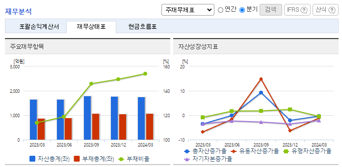 -2024년 3월 전년동기 대비 연결기준 매출액은 2.6% 증가, 영업손실은 52% 감소, 당기순손실은 34.7% 감소. 수전금구는 동사 제품전체(수출 및 내수)를 대상으로 출고기준에 의한 단순 평균 단가를 산출했으며, 전기대비 제품 가격이 소폭 상승함. 비데는 원자재 단가 상승으로 인한 평균단가가 상승하였고 양식기(PT.DLI)는 수주품목의 변화 및 판매단가, 원자재 단가 상승으로 인한 평균단가가 전기대비 소폭 상승함.