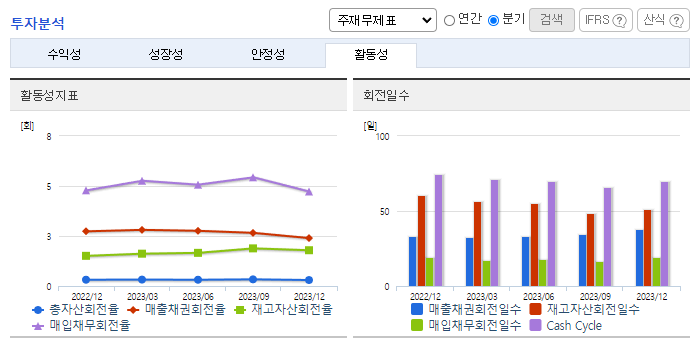 -2023년 12월 전년동기 대비 연결기준 매출액은 0.6% 증가, 영업이익은 20.3% 감소, 당기순이익은 34.5% 감소. 영업이익과 당기순이익은 원재료비와 물류비 상승으로 원가 및 판관비가 전반적으로 상승했기 때문에 감소하였음. 지속된 국제 원자재 가격 및 곡물가격 인플레이션 현상도 안정세를 보일 것으로 전망하며, 2024년에는 금리도 하향 안정세로 접어들면서, 당사의 수익성 역시 예전 수준으로 복귀할 것으로 예상함.