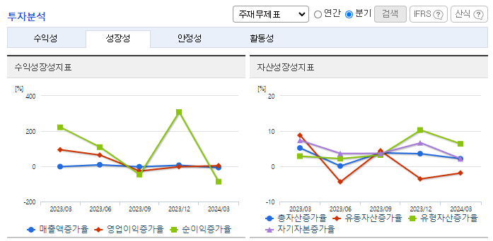 -2024년 3월 전년동기 대비 연결기준 매출액은 4.1% 증가, 영업이익은 21.2% 증가, 당기순이익은 47.1% 감소. 전문의약품의 견조한 성장이 지속되면서 위식도역류질환 신약 '펙수클루'가 높은 매출을 달성하였고, SGLT-2 억제제 신약 '엔블로' 또한 주요 종합병원에 랜딩 하며 매출을 견인하였음. 해외 국가에서의 환자 치료 약물 선택의 다양성을 제공하고 치료 기회를 확대하며 글로벌 시장 진출을 적극적으로 추진하고 있음.