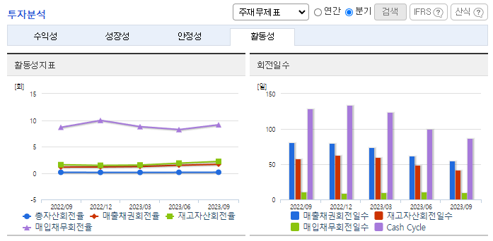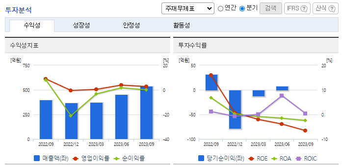 -2023년 9월 전년동기 대비 연결기준 매출액은 0% 증가, 영업이익은 71.2% 감소, 당기순이익 적자전환. 현재 2023년도에는 초기효율이 많이 개선된 실리콘 산화물로 초기효율 85%∼88%의 다양한 제품군으로 양산 준비를 하고 있음. 또한 차세대 실리콘계 음극재로 초기효율(∼90%), 방전용량(≥1800mAh/g)이 획기적으로 개선된 제품을 파일롯 단계에서 고객사들의 평가와 피드백을 받으며 제품화 진행 중.