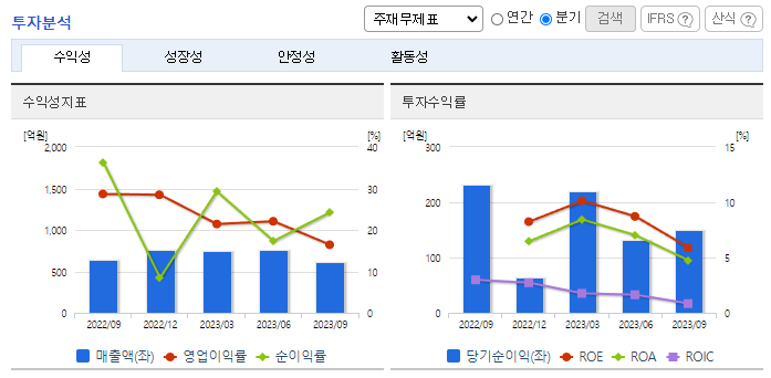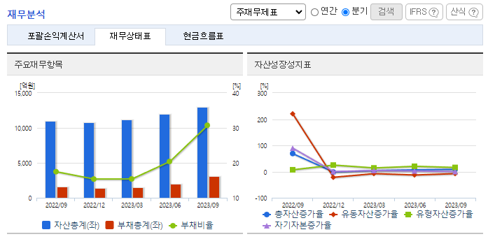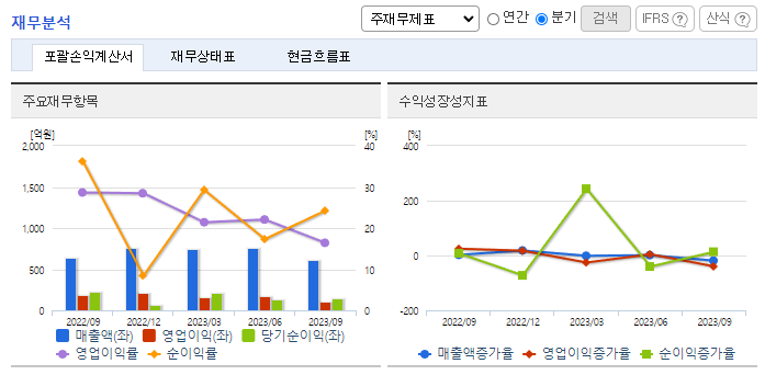 -2023년 9월 전년동기 대비 연결기준 매출액은 17.2% 증가, 영업이익은 18.1% 증가, 당기순이익은 2.6% 증가. 이차전지시장의 성장에 따른 분리막 제품의 수요증가로 매출과 영업이익이 모두 상승함. 고단가의 코팅제품 매출 비중의 증가로 매출 상승 기대됨. 유럽 시장 진출의 교두보 역할을 할 것으로 기대되는 헝가리 공장은 2023년 말 건물 완공, 2024년 1분기에는 생산 설비들의 설치가 완료될 것으로 예상됨.