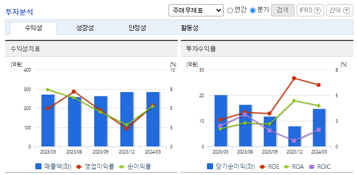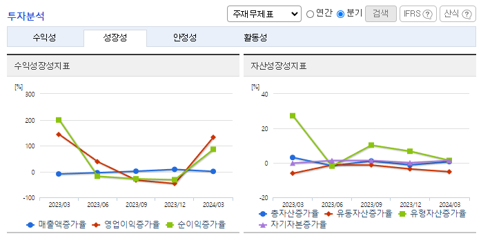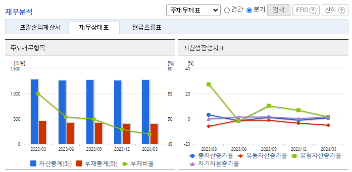 -2024년 3월 전년동기 대비 연결기준 매출액은 4.8% 증가, 영업이익은 13.3% 증가, 당기순이익은 26.1% 감소. 내수는 6.3% 감소하였지만 DUKSUNG(G.Z)에서 생산하는 상품의 수출이 43.4% 증가하는 등 전체 수출이 13.5% 증가함에 따라 매출 증가함. 올해 경영전망도 불확실한 부분이 많지만 기존 사업의 토대 위에 새로운 제품의 개발에 주력하여 수익성 증대에 힘쓸 예정임.