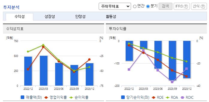 -2023년 9월 전년동기 대비 연결기준 매출액은 25.5% 감소, 영업이익 적자전환, 당기순이익 적자전환. 주력 영업부문인 게임부문의 매출이 26.4% 가량 하락하면서 실적이 부진함. 기존 라이브 서비스의 운영을 통해 지속적인 성과를 창출하고, 신규 게임들의 런칭으로 추가적인 신규 IP확보, PC/콘솔 등의 신규 플랫폼 공략을 진행하여 추가적인 매출원을 발굴해 나갈 계획임.