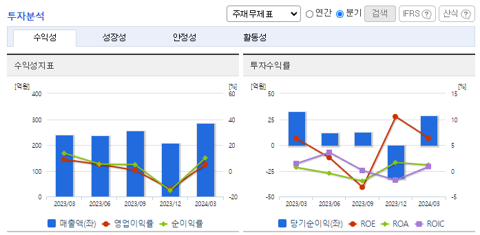 -2024년 3월 전년동기 대비 연결기준 매출액은 18.6% 증가, 영업이익은 32.2% 감소, 당기순이익은 24.6% 감소. 임플란트 사업 부문 12.38%, 의료용 조명등 사업 부문이 24.71% 증가하면서 전체 외형 성장을 주도함. 원재료 가격 상승과 함께 매출원가 30.7% 증가, 판관비 16.1% 증가하면서 영업이익에 악영향을 줌. 인건비 및 복리후생비가 26.4% 증가하면서 부담을 가중시킴.