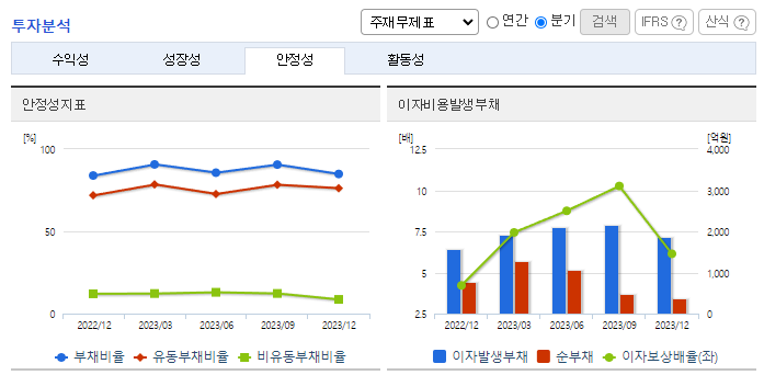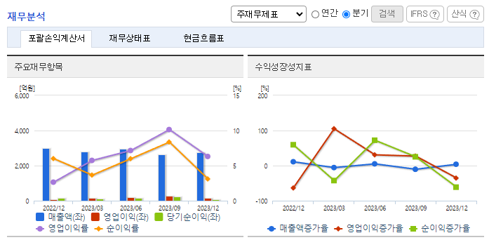 -2023년 12월 전년동기 대비 연결기준 매출액은 1.9% 감소, 영업이익은 47.4% 증가, 당기순이익은 4.5% 감소. 매출액이 전년 대비 감소한 데 비해 원가율 개선이 이루어졌음. 이에 따라 판관비, 인건비 등 고정비 증가 부담에도 영업이익이 큰 폭으로 증가함. 동사는 지속가능한 성장 기반을 구축하기 위해 범용 석유화학 설비의 70%를 철거하고 고부가가치 사업인 정밀화학(유기과산화물) 설비 증설 작업에 착수했음.