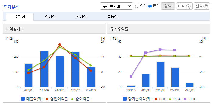 -2024년 3월 전년동기 대비 별도기준 매출액은 15.9% 감소, 영업이익 흑자전환, 당기순이익은 197.8% 증가. 2024년 1분기 기준 동사 매출은 132억으로 전년동기 분기 156억 대비 약 15% 감소하였으나 원가와 판관비 등의 비용 절감으로 영업이익이 대폭 증가하며 흑자전환하였음. 2024년 1분기 기준 138억의 공사물량을 신규로 수주하여 전년동기 대비 181억 대비 약 24% 감소하였음.