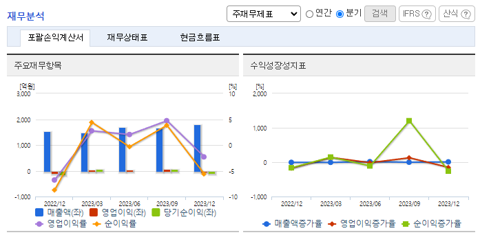 -2023년 9월 전년동기 대비 연결기준 매출액은 0.4% 증가, 영업이익은 43.4% 감소, 당기순이익은 31.5% 감소. 전문의약품 부문에서 성장호르몬인 그로트로핀이 매출을 주도하였으며, 해외사업부는 박카스 수출 감소 등으로 전년대비 실적이 감소하였음. 전문의약품은 임상자료를 바탕으로 한 근거중심의 마케팅 활동을 통하여 시장지 배력을 강화하고 있음.