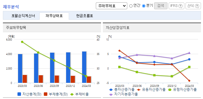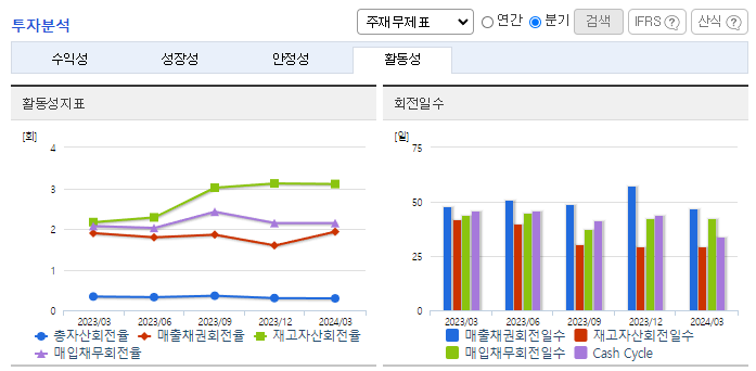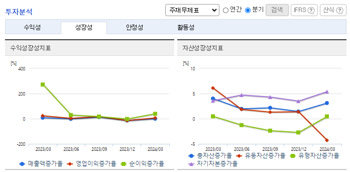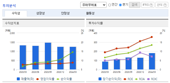 -2024년 3월 전년동기 대비 연결기준 매출액은 5.4% 감소, 영업이익은 8.9% 증가, 당기순이익은 105% 증가. 원자재 수급 부족으로 원가 상승 및 물류비 상승 여파가 지속되는 가운데 비용통제를 통하여 수익성이 개선됨. 동사는 친환경 제품에 관심이 모이는 트렌드를 반영해 태양광인버터(PCS)등의 친환경제품 등의 개발에 역량을 집중하는 등 빠르게 변화하는 시장에 신속하게 대응 중.