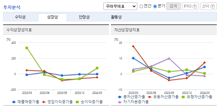 -2024년 3월 전년동기 대비 연결기준 매출액은 13.6% 감소, 영업이익은 95.5% 감소, 당기순이익은 83.2% 감소. 주요 사업부문인 DK-LOK Fitting, D-PRO Valve 부문에서의 매출이 하락하였음. 이와 더불어 비용 상승으로 인한 영업이익 하락. 유가 및 환율 상승, 대체에너지 시장의 수요 증가 등 우호적 사업 환경의 조성과 신규시장 발굴 및 고객 다변화를 통해 지속적인 매출성장과 이익의 확대를 기대 중임.
