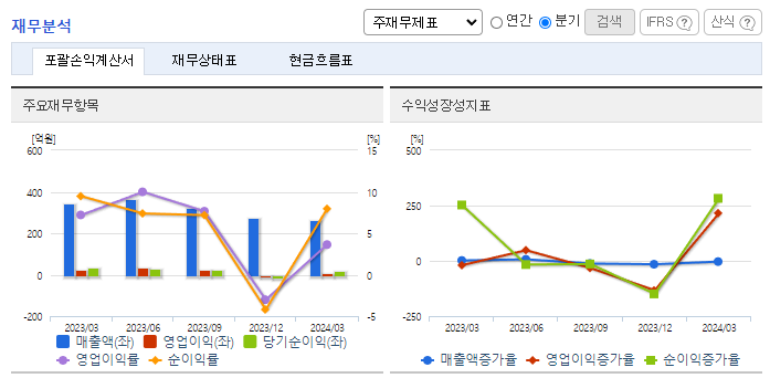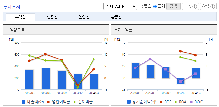 -2023년 12월 전년동기 대비 연결기준 매출액은 14% 감소, 영업이익은 29% 감소, 당기순이익은 19.9% 감소. 동사 매출은 세계시장의 경제 불황과 국내 건설경기 침체로 인해 2022년 대비 14% 하락을 하였음. 2022년 급등했던 원자재 및 해상운임은 소폭 하락을 하였으나, 매출의 하락폭이 더 큰 탓에 전년 대비 영업이익이 29% 넘게 감소하였음.