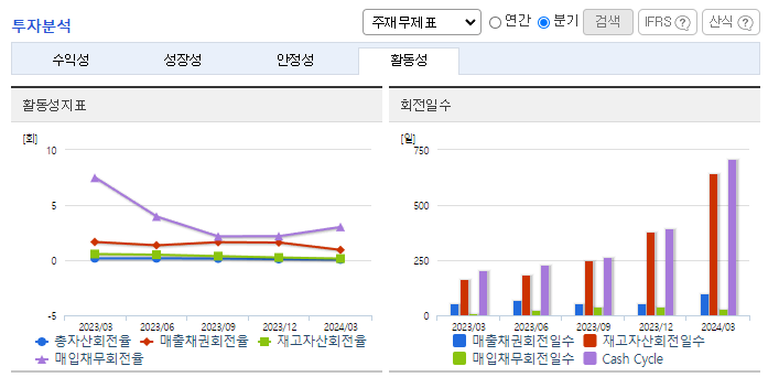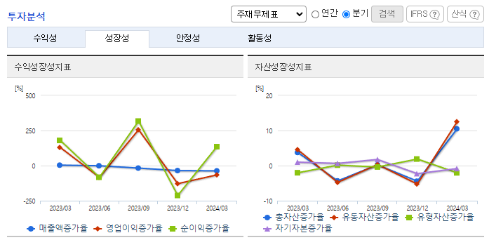 -2024년 3월 전년동기 대비 연결기준 매출액은 66.7% 감소, 영업이익 적자전환, 당기순이익은 59.1% 감소. AI, 자율주행차, IoT 등 차세대 기술 수요가 크게 증가함에 따라 메모리 반도체뿐 아니라 파운드리 수요도 함께 증가할 것으로 전망됨. 대기업 공정물류 자동화 프로젝트 등 300대 이상의 AGV공급 레퍼런스를 보유 중이며, 기존 고객사 추가 발주 외에도 북미, 인도 등 해외 프로젝트 확대 중임.