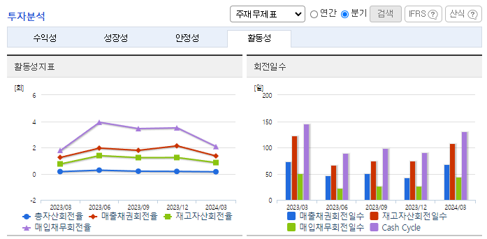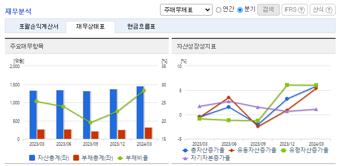 -2024년 3월 전년동기 대비 연결기준 매출액은 3.4% 감소, 영업이익은 5.3% 감소, 당기순이익은 26.2% 감소. 동사는 전방산업인 FPD, OLED산업의 투자감소가 지속되고 있으며 인건비 등 고정비용 지출에 따른 영업이익도 감소함. 2024년은 주요 고객사의 투자계획과 반도체 수요 증가 및 개발장비의 시장개척을 통해 영업이익이 최대화되도록 할 계획임.