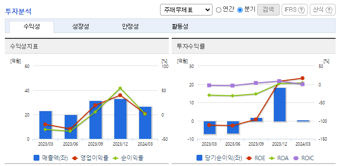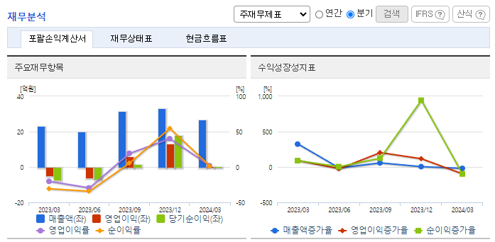 -2024년 3월 전년동기 대비 별도기준 매출액은 14.9% 증가, 영업이익 흑자전환, 당기순이익 흑자전환. 국산 1회용 바이오리액터(세포배양기) ‘셀빅(CELBIC)’의 소형화 버전을 출시해 글로벌 랩 시장을 공략 중임. 동사는 흡광 분석 장치(ABSORBANCE SPECTROSCOPIC DEVICE)의 미국 특허를 취득하며 북미 바이오메디컬 시장 진출 진행 중임.