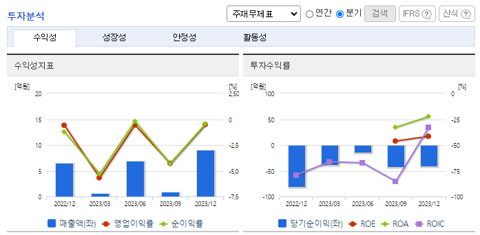 -2023년 12월 전년동기 대비 연결기준 매출액은 39% 감소, 영업손실은 53.4% 증가, 당기순손실은 11.2% 감소. 반도체 업황 부진 등으로 인한 산업용 AR 솔루션 부문의 매출이 크게 감소함. 2023년 12월 스마트팩토리 컨설팅과 MES 구축 등을 주된 사업으로 영위하는 아이엘포유의 경영권을 인수하는 계약을 체결하며 SI 개발 분야에서 시너지 창출을 기대하고 있음.