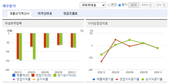 -2023년 9월 전년동기 대비 연결기준, 영업손실은 9% 감소, 당기순손실은 31.8% 증가. 동사가 개발 중인 암 진단키트가 국내 특허에 이어 일본, 유럽 특허 등록됨. 이를 통해 글로벌 시장 공략해 매출 성장이 기대됨. 파이프라인의 다변화를 위해 MPD-001 등의 후속 파이프라인 연구개발을 추진 중이며 현재 4개의 신규 타깃을 발굴하여 신약 후보물질 개발 계획 중.