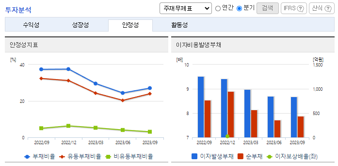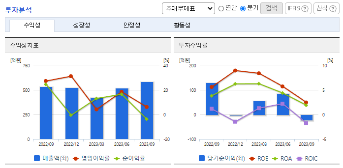 -2023년 9월 전년동기 대비 연결기준 매출액은 7.2% 증가, 영업이익은 51% 감소, 당기순이익은 68.5% 감소. 동사의 매출은 증가했으나 소송 관련 비용으로 인해 영업이익이 감소함. 지배기업은 대전지방식품의약품안전청과의 메디톡신주(50단위, 100 단위, 150 단위)에 대한 품목허가 취소 처분 및 잠정제조판매중지명령 처분에 대한 취소소송에 대하여 2023년 11월 9일 1심판결에서 승소.